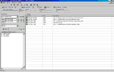Host Name에는 포트스캔할 주소(도메인 네임)를 입력하고 주소가 정확히 입력되었는가 확인하기 위해 Look up 버튼을 누르면 Start/Stop 항목에 입력한 주소의 형태를 “DNS” 형태(IP 주소)로 나타내준다. 왼쪽 중간에 Port Set에서는 None/NSF/HSF/Proxy Ports/Trojan 포트 등 다양한 종류의 포트스캔을 선택할 수 있다. 전자메일 및 Ftp를 스캔하기 위해서는 (NSF), 프락시포트를 스캔해 주는 Proxy Ports, 트로이프로그램과 연결된 포트를 스캔해 주는 Trojan 등이 있다. 스캔할 주소를 왼쪽하단에 Add버튼을 눌러 입력하면 동시에 여러 개의 주소를 리스트화해서 스캔할 수 있다.