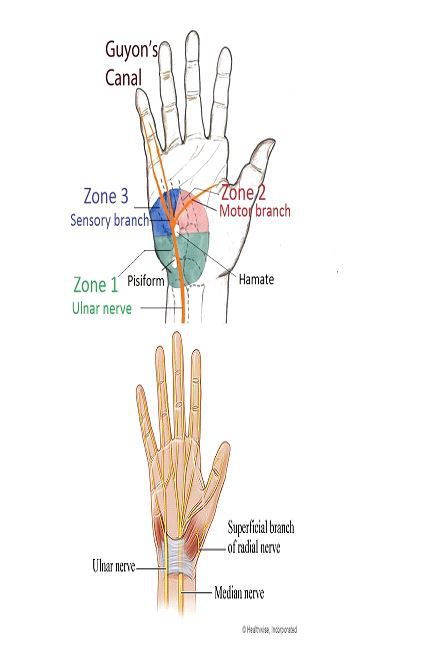 손목뼈중 콩알뼈와 갈고리뼈 사이에 함몰되어 있는 부위를 가이온터널(Guyon tunnel)이라 하며, 이 굴에는 자뼈신경과 자뼈동맥이 통과한다.