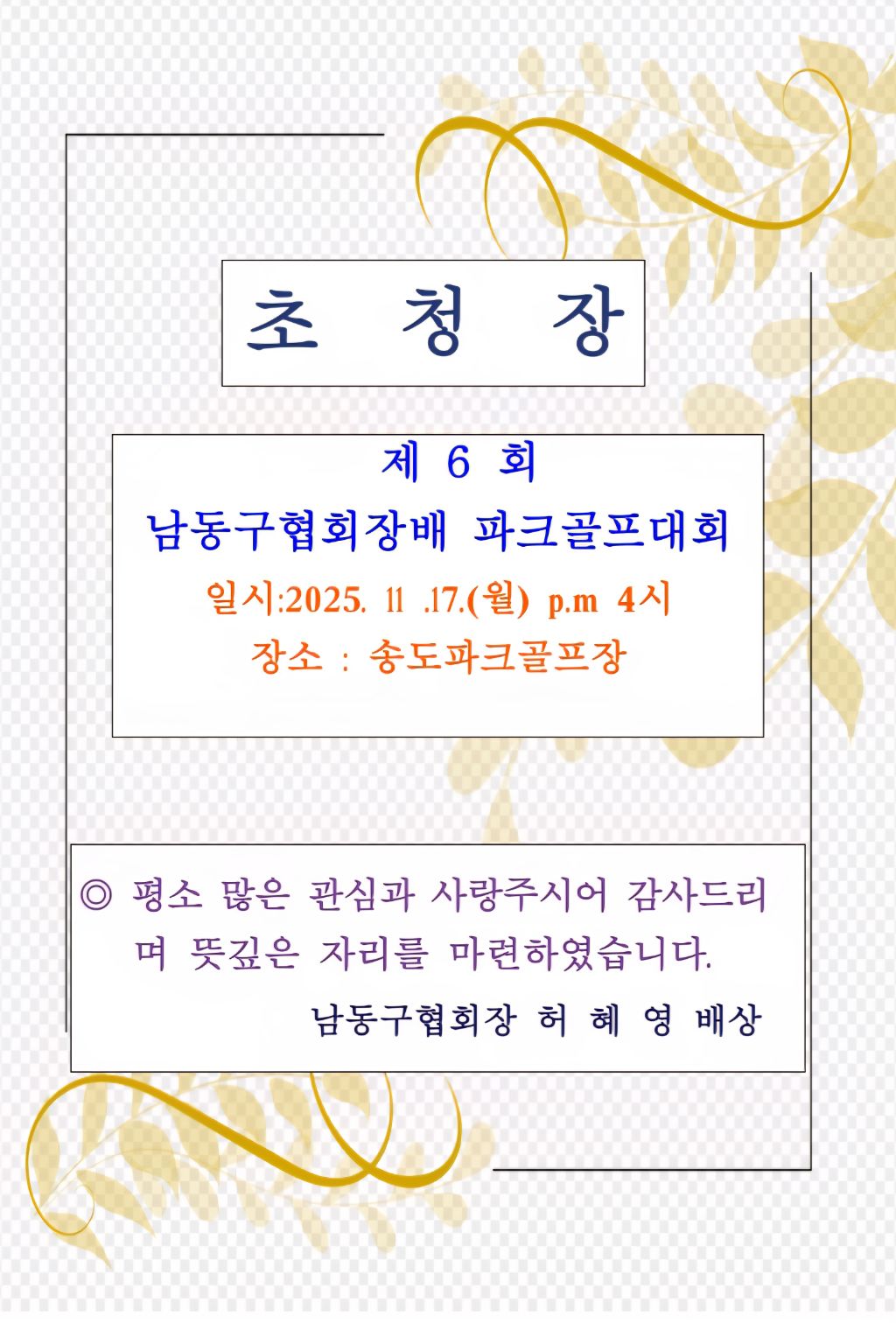 제6회 남동구협회장배 초청합니다 작성자한인순 01052785494|작성시간25.11.01|조회수85 목록 댓글 0 글자크기 작게가 글자크기 크게가 [인천광역시남동구파크골프협회] BAND :: #협회공지사항 제6회 남동구협회장배 초청합니다 https://band.us/band/95700380/post/240#협회공지사항 제6회 남동구협회장배 초청합니다인천광역시남동구파크골프협회 | 밴드www.band.us 다음검색 현재 게시글 추가 기능 열기 북마크 공유하기 신고 센터로 신고 댓글 댓글 0 댓글쓰기 답글쓰기 댓글 리스트