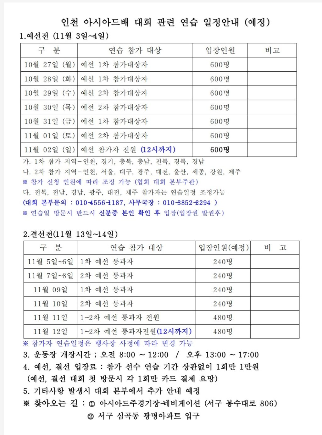 인천 아시아드배 연습일정 공지 작성자한인순 01052785494|작성시간25.10.21|조회수527 목록 댓글 1 글자크기 작게가 글자크기 크게가 인천 아시아드배 대회관련 연습 일정기간 : 10/27~11/2장소 : 인천 아시아드 주경기장내 아시아드파크골프구장 (서구 봉수대로 806) 다음검색 현재 게시글 추가 기능 열기 북마크 공유하기 신고 센터로 신고 댓글 댓글 1 댓글쓰기 답글쓰기 댓글 리스트 작성자조재철 | 작성시간 25.10.22 정보 감사합니다~ 댓글 전체보기