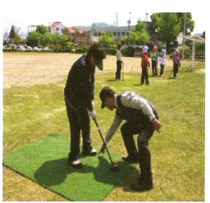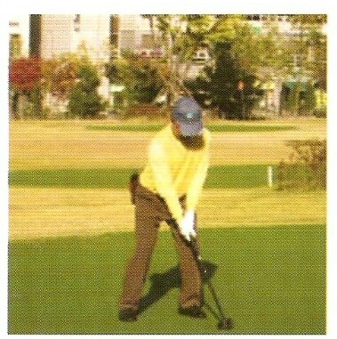 (2) 직립한 자세로부터 등줄기를 편 상태르 허리틀 굽혀 클럽 밑부분이 지면에 닿도록 한다.