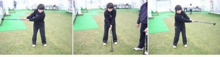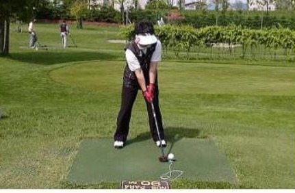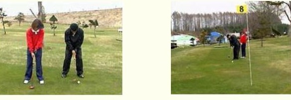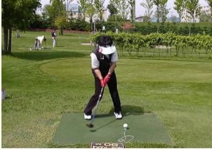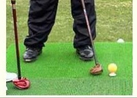 <2>. " 라이너(Liner) 타법 → 티 그라운드에 어드레스를 취하고,왼발보다 목표 방향 측 10~20㎝ 앞에 볼을 놓고 칩니다. 볼은 낮은 직선으로 경력자가 치는 듯한 볼이 됩니다.