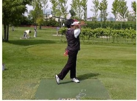 (☞참고 : 임팩트 ~구기 경기에서,배트,클럽,라켓 등으로 공을 친 순간,또는 그타격(골프에서 스윙을 하는 동안에는 임팩트 직전까지 양쪽 무릎의 간격을 그대로 유지 해야한다.)