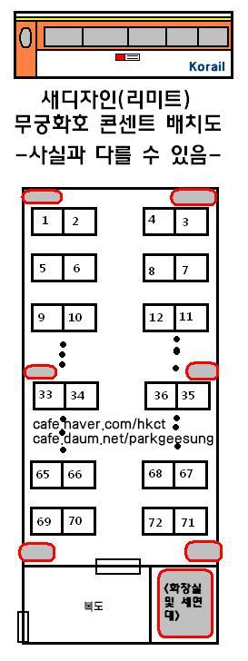새디자인 무궁화호는 가히 콘센트 천국이라 해도 과언이 아닙니다. 첨부된 사진을 참고해주세요.