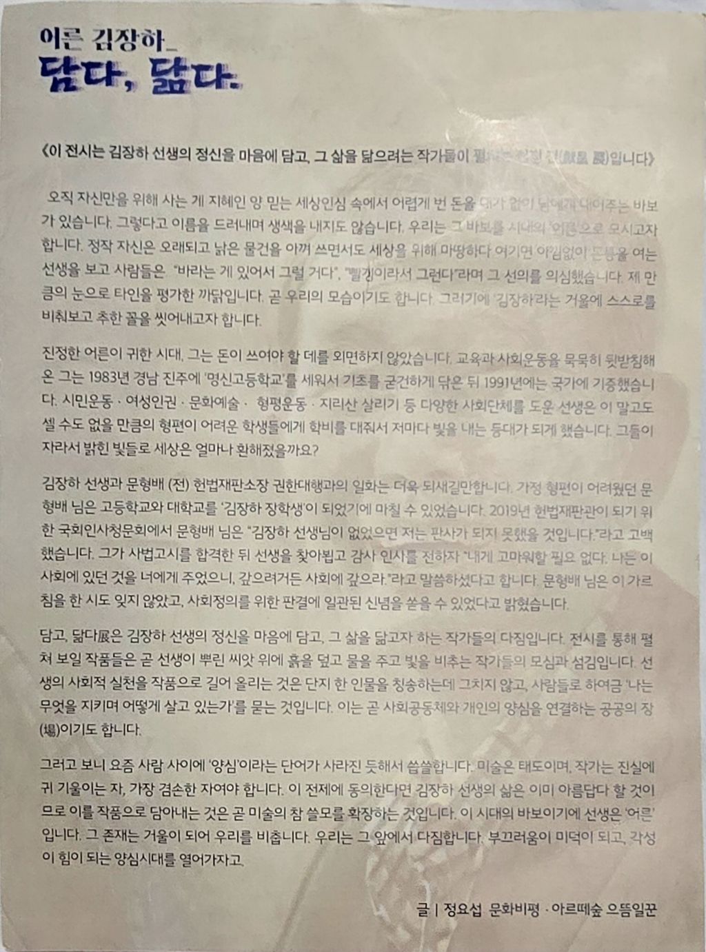 갤러리 리장, 관장님이 은근슬쩍 넣는 책무, 도리, 시인정신, 기타등등 압박으로 인해