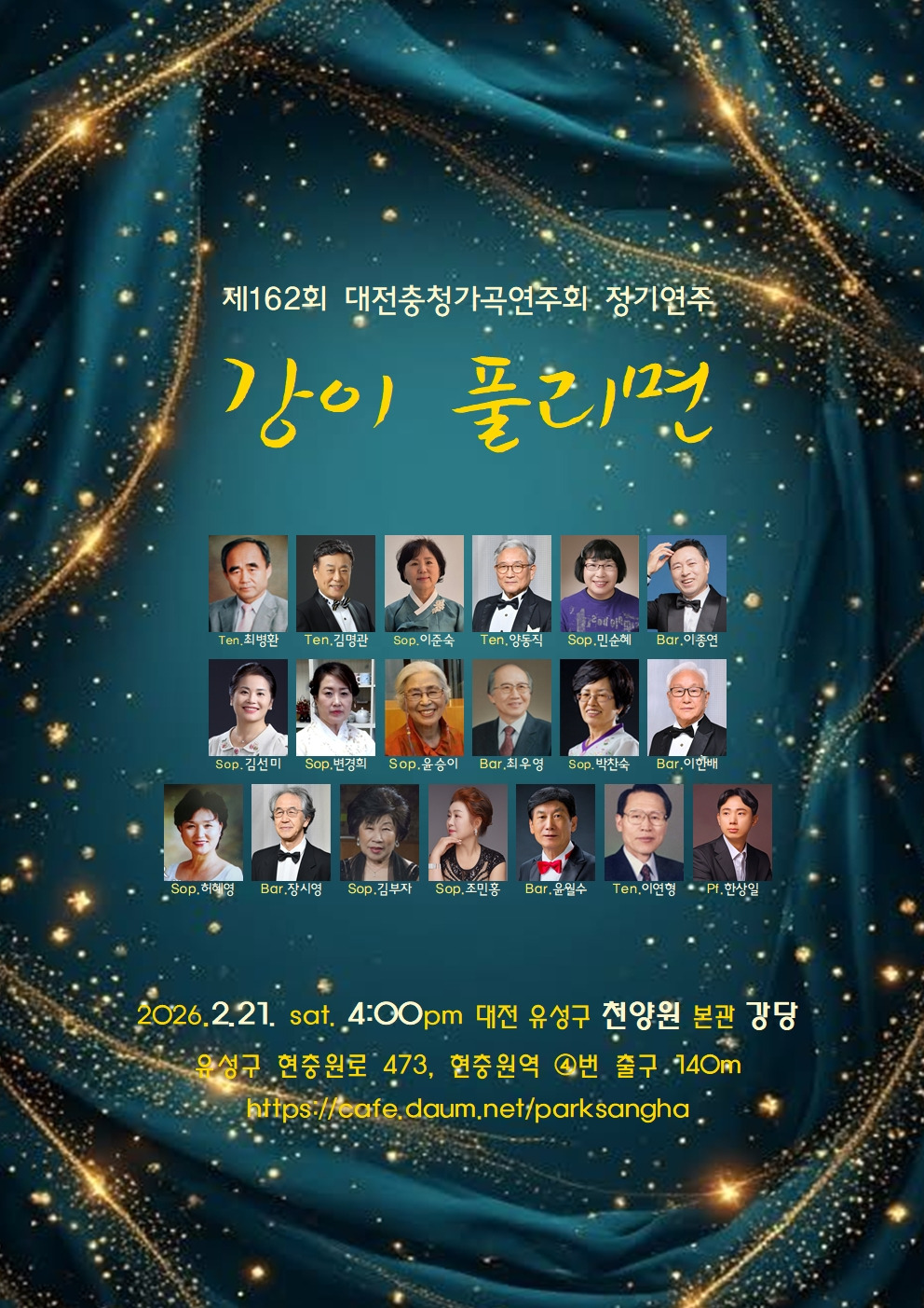 제162회 대전충청가곡연주회 정기연주 26.2.21.토. 천양원강당. 작성자김명관|작성시간26.01.28|조회수20 목록 댓글 0 글자크기 작게가 글자크기 크게가 다음검색 현재 게시글 추가 기능 열기 북마크 공유하기 신고 센터로 신고 댓글 댓글 0 댓글쓰기 답글쓰기 댓글 리스트