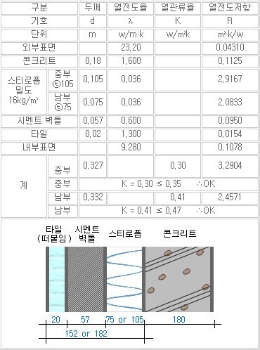 - 기타 단열재로서 열전도율이 0.047 ∼ 0.051 W/mK (0.040 ∼ 0.044 ㎉/mh℃)이하인 경우 |