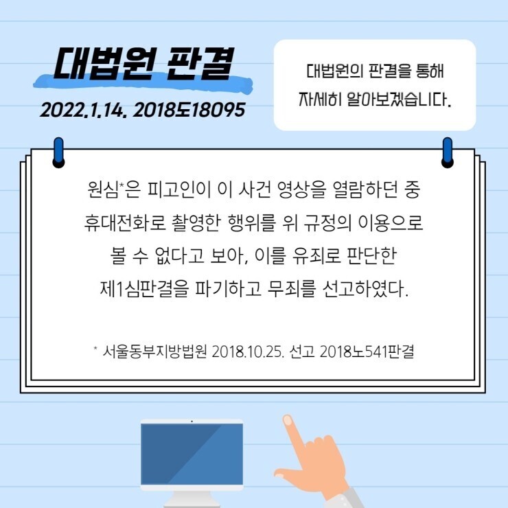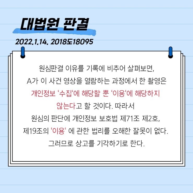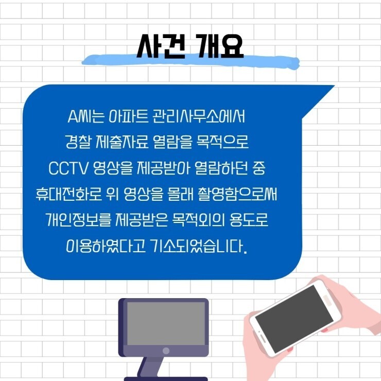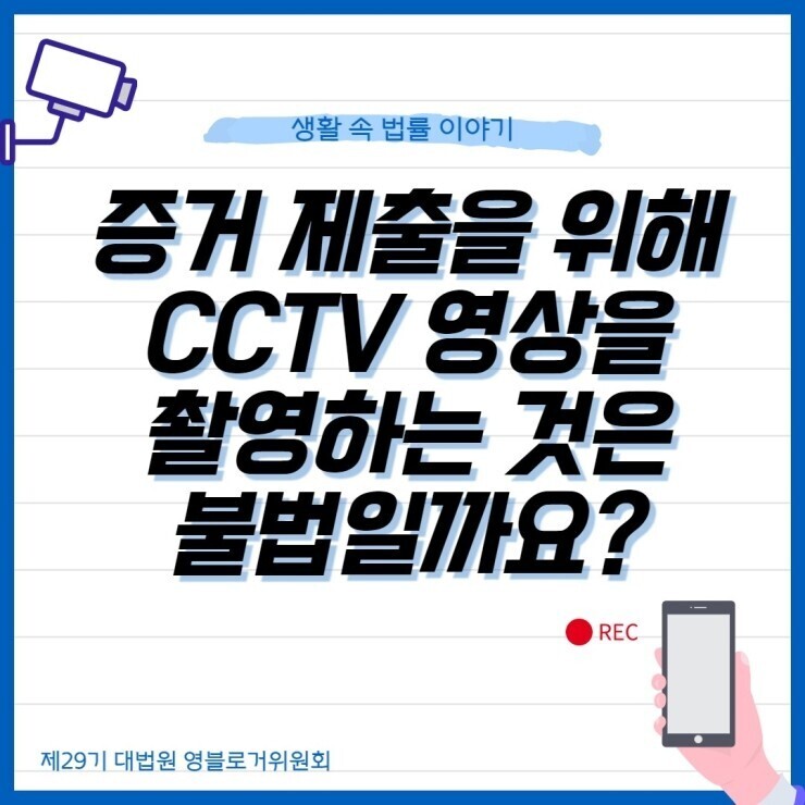 경찰 제출자료 열람을 목적으로 제공받은 CCTV 영상을 휴대전화로 촬영했다면, 불법일까? 작성자로우인|작성시간22.03.25|조회수44 목록 댓글 0 글자크기 작게가 글자크기 크게가 출처 : 명쾌한 판사링크 : https://blog.naver.com/law_zzang 다음검색 현재 게시글 추가 기능 열기 북마크 공유하기 신고 센터로 신고 댓글 댓글 0 댓글쓰기 답글쓰기 댓글 리스트
