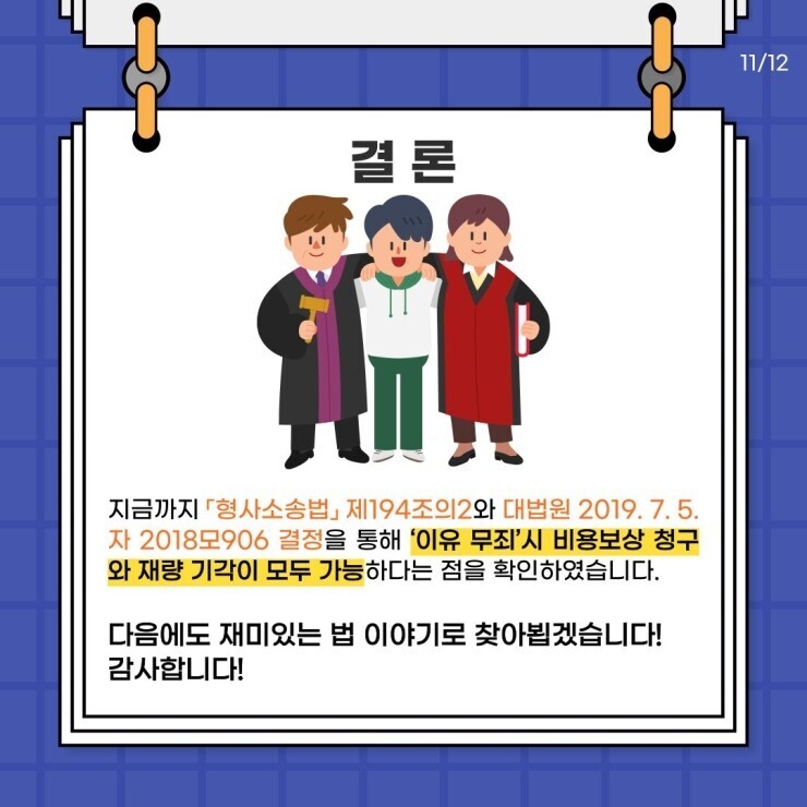 [출처] [명쾌한 수다] ‘이유 무죄’시 비용보상 청구와 재량 기각의 가부 |작성자 명쾌한 판사