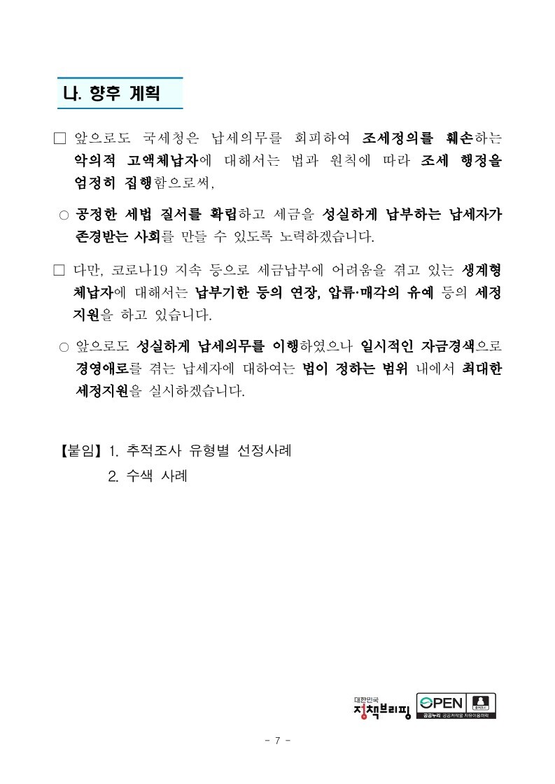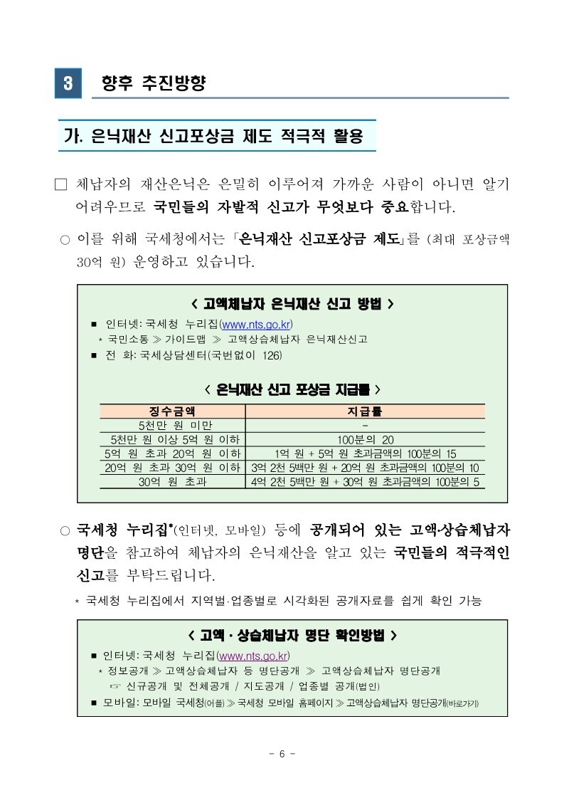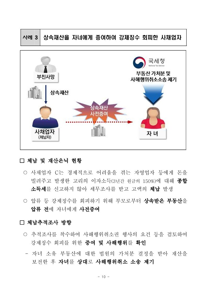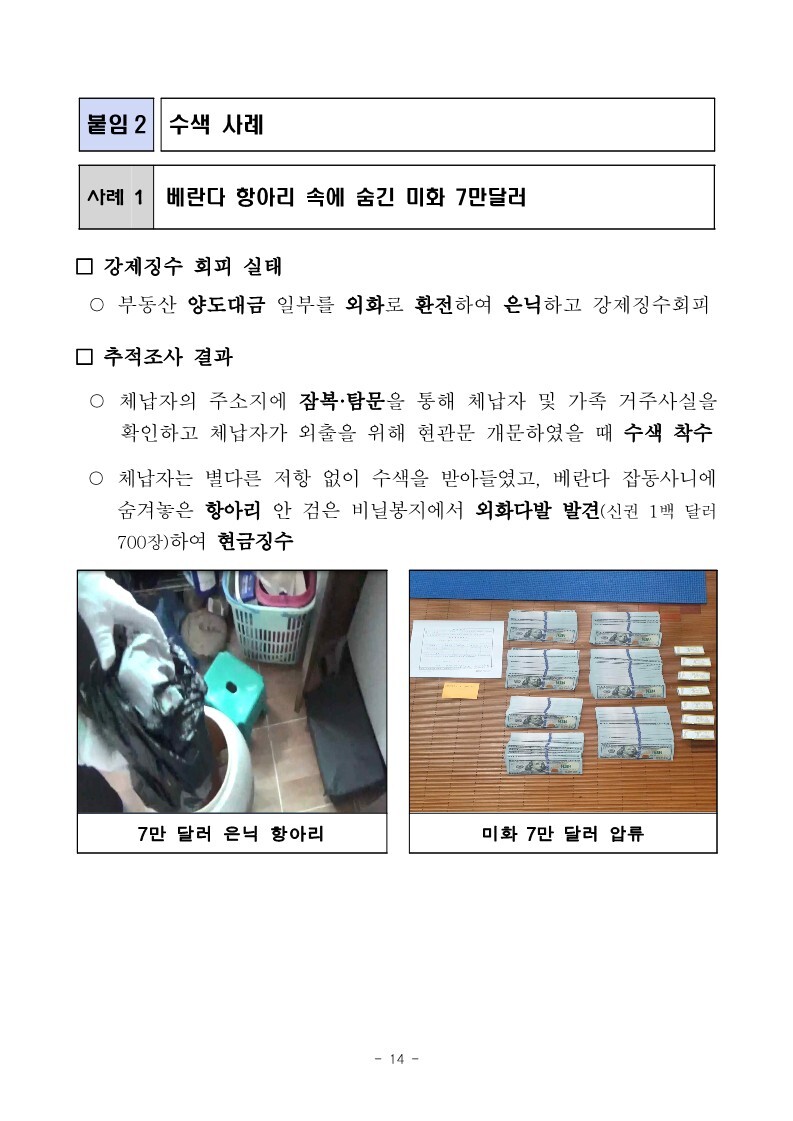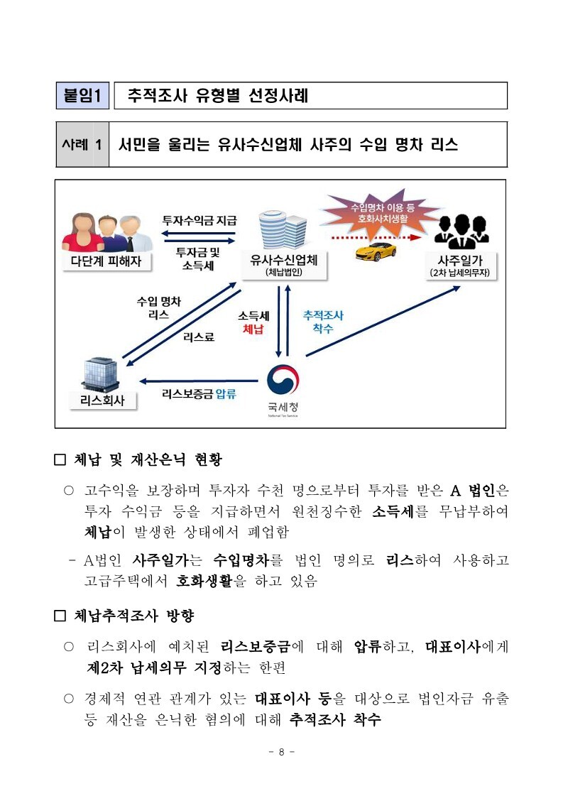 재산은닉한 지능적 고액체납자 추적조사 실시 작성자로우인|작성시간22.03.30|조회수13 목록 댓글 0 글자크기 작게가 글자크기 크게가 220324 체납추적조사 보도참고자료(홈페이지 게시용) .pdf1.33MB출처 : 국세청링크 : https://www.nts.go.kr/nts/na/ntt/selectNttInfo.do?mi=2201&bbsId=1028&nttSn=1303749 첨부파일첨부된 파일이 17개 있습니다. jpg 파일 220324 체납추적조사 보도참고자료(홈페이지 게시용) _1.jpg 다운로드 jpg 파일 220324 체납추적조사 보도참고자료(홈페이지 게시용) _7.jpg 다운로드 jpg 파일 220324 체납추적조사 보도참고자료(홈페이지 게시용) _2.jpg 다운로드 jpg 파일 220324 체납추적조사 보도참고자료(홈페이지 게시용) _6.jpg 다운로드 jpg 파일 220324 체납추적조사 보도참고자료(홈페이지 게시용) _8.jpg 다운로드 jpg 파일 220324 체납추적조사 보도참고자료(홈페이지 게시용) _9.jpg 다운로드 jpg 파일 220324 체납추적조사 보도참고자료(홈페이지 게시용) _3.jpg 다운로드 jpg 파일 220324 체납추적조사 보도참고자료(홈페이지 게시용) _5.jpg 다운로드 jpg 파일 220324 체납추적조사 보도참고자료(홈페이지 게시용) _10.jpg 다운로드 jpg 파일 220324 체납추적조사 보도참고자료(홈페이지 게시용) _4.jpg 다운로드 jpg 파일 220324 체납추적조사 보도참고자료(홈페이지 게시용) _11.jpg 다운로드 jpg 파일 220324 체납추적조사 보도참고자료(홈페이지 게시용) _12.jpg 다운로드 jpg 파일 220324 체납추적조사 보도참고자료(홈페이지 게시용) _15.jpg 다운로드 jpg 파일 220324 체납추적조사 보도참고자료(홈페이지 게시용) _13.jpg 다운로드 jpg 파일 220324 체납추적조사 보도참고자료(홈페이지 게시용) _16.jpg 다운로드 jpg 파일 220324 체납추적조사 보도참고자료(홈페이지 게시용) _14.jpg 다운로드 pdf 파일 220324 체납추적조사 보도참고자료(홈페이지 게시용) .pdf 다운로드 다음검색 현재 게시글 추가 기능 열기 북마크 공유하기 신고 센터로 신고 댓글 댓글 0 댓글쓰기 답글쓰기 댓글 리스트