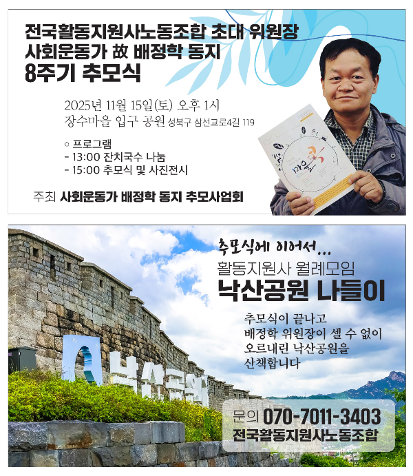 주최: 사회운동가 배정학 동지 추모사업회