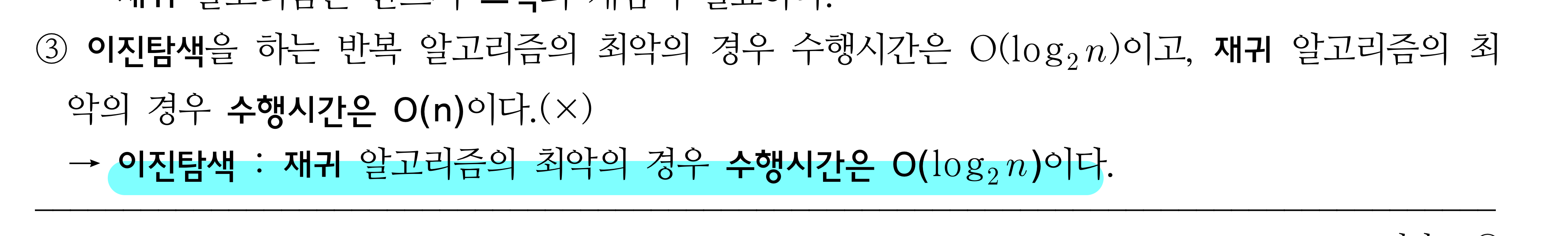 이진탐색-재귀, 반복 수행시간 작성자세제|작성시간21.10.15|조회수95 목록 댓글 2 글자크기 작게가 글자크기 크게가 이진탐색의 최악 수행시간이 O(n)이라서, 당연히 이진탐색의 반복, 재귀알고리즘도 최악시간이 O(n)인 줄 알았는데,둘 다 O(log n)인건가요?? 다음검색 현재 게시글 추가 기능 열기 북마크 공유하기 신고 센터로 신고 댓글 댓글 2 댓글쓰기 답글쓰기 댓글 리스트 작성자홍재연 | 작성시간 21.10.16 이진탐색의 최악 수행시간은 O(n)이 아니고, O(log n) 입니다. 작성자nonu | 작성시간 21.10.21 array에서 이진탐색하는 경우엔 최악의 경우 lg N입니다. 이진탐색트리에서 탐색하는 경우엔 최악의 경우 N이 됩니다 댓글 전체보기