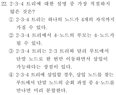 2-3-4 트리는 루트에서 단말노드로 한번만 이동하면서 삽입이 가능