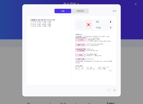 문제의 해설을 팝업으로 제공하여 페이지를 이동하지 않고도 손쉽게 확인할 수 있도록 도와줍니다.