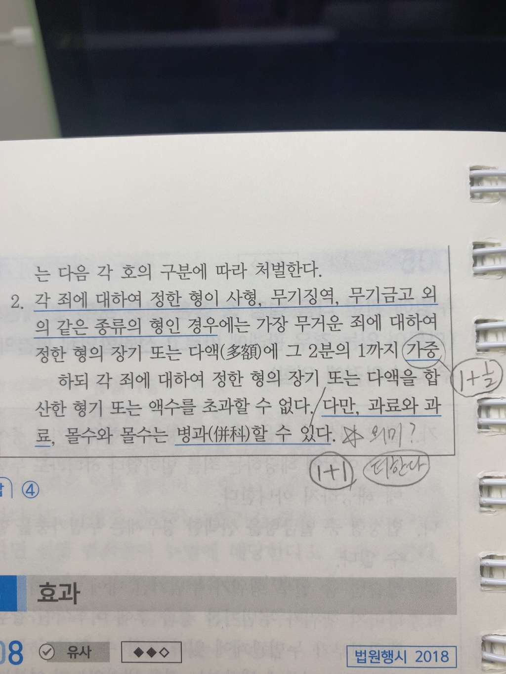 과료+과료, 몰수+몰수 이렇게 단순 합산 한다는 의미 맞지요?