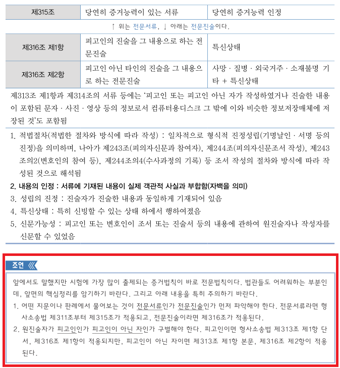 형사소송법에서 우리를 괴롭히는 것이 바로 전문법칙입니다. 강의를 들으면 대충 알 거 같기도 한데, 막상 문제를 보면 잘 모르겠어요. 조문 자체가 추상적이어서 어렵기도 하고, 법이 자주 개정되기도 하고, 법조문 상호간에 모순되기도 하고, 증거능력과 증명력이 섞여 있기도 하고, 판례도 약간 애매하기 때문입니다.