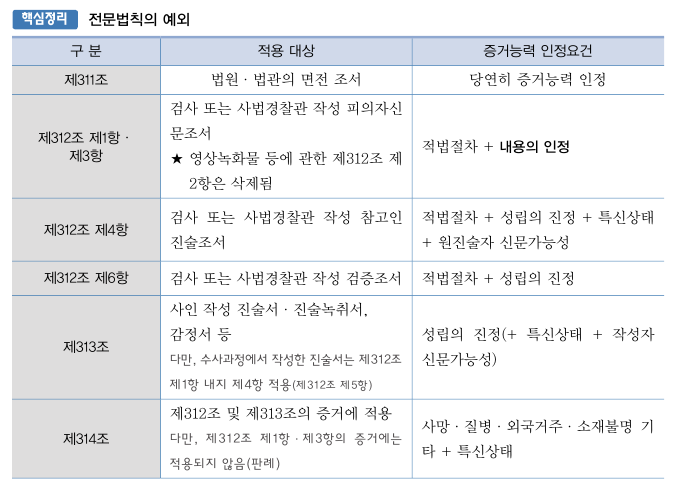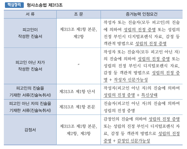 특히 형사소송법 제313조는 일반인이 읽을 수 없는 조문인데요, 이것을 정리하면 아래 도표와 같습니다.