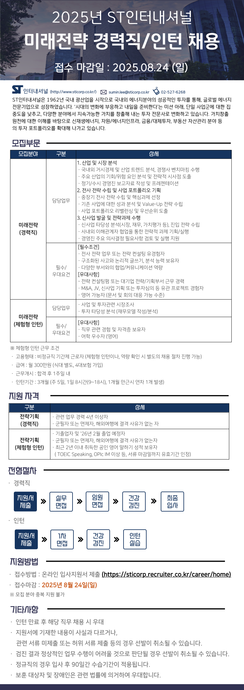ST인터내셔널과 함께 성장할 인재를 기다립니다. 지금 채용 공고를 확인해보세요.
