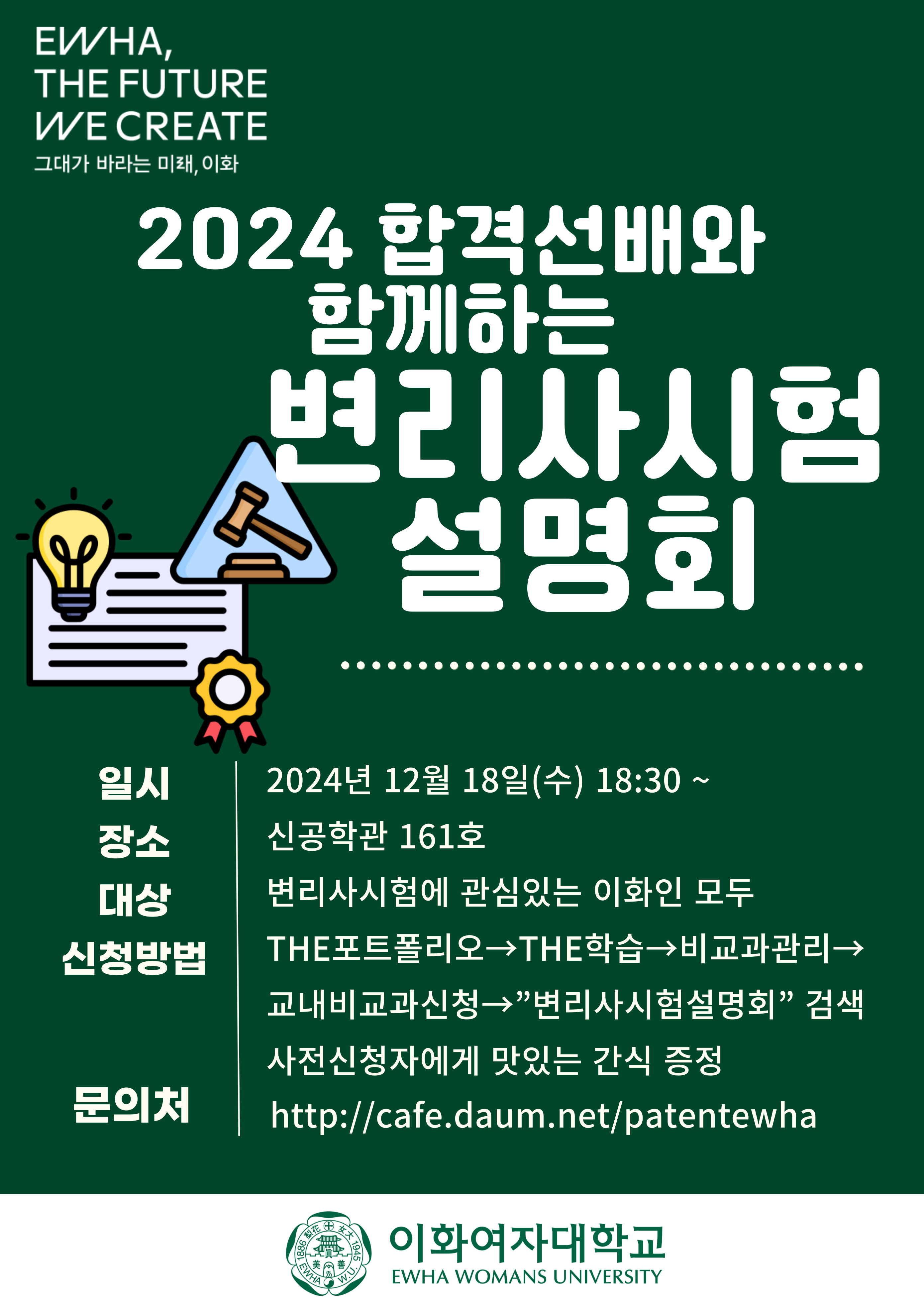 24년에 합격하신 합격선배님이 많이 참석하시므로, 변리사 시험 관련하여 궁금한 점이 있으시면 꼭 참석하시어 궁금증을 해결하시기 바랍니다.
