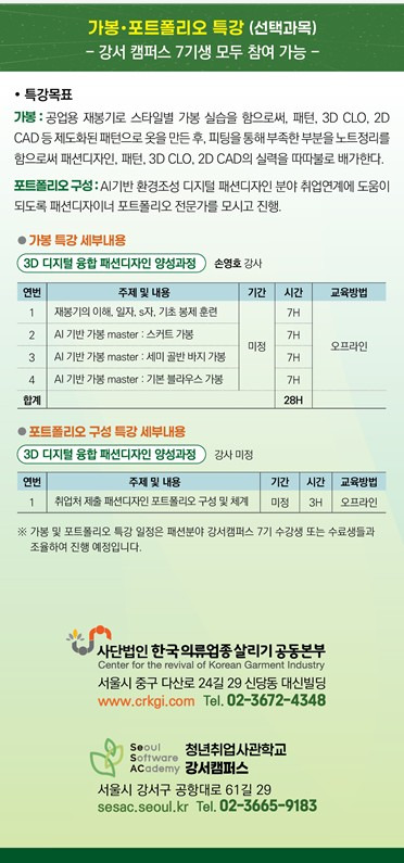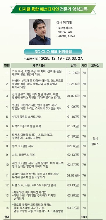 ◯3D CLO포함 디지털 패션디자인 분야 세부 커리큘럼