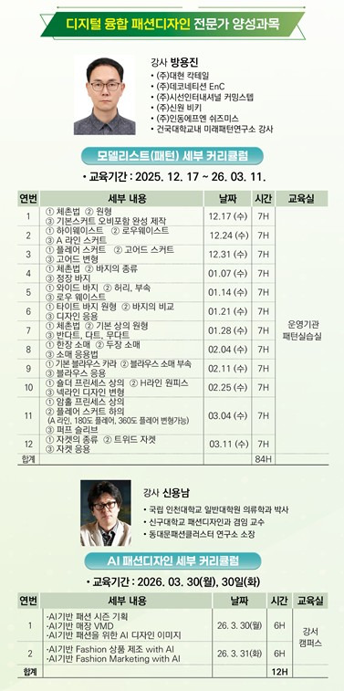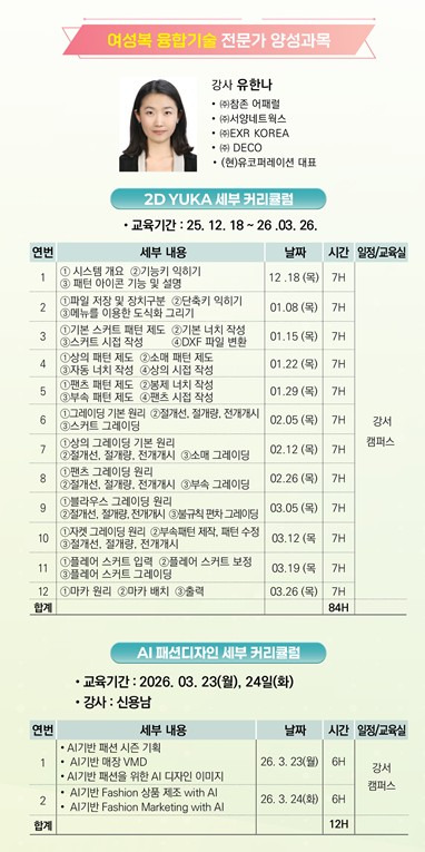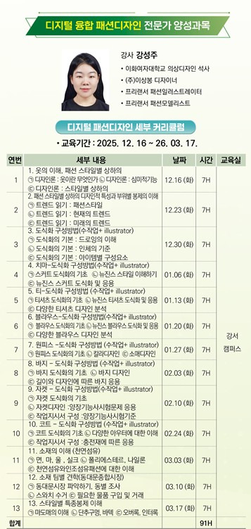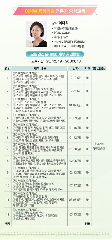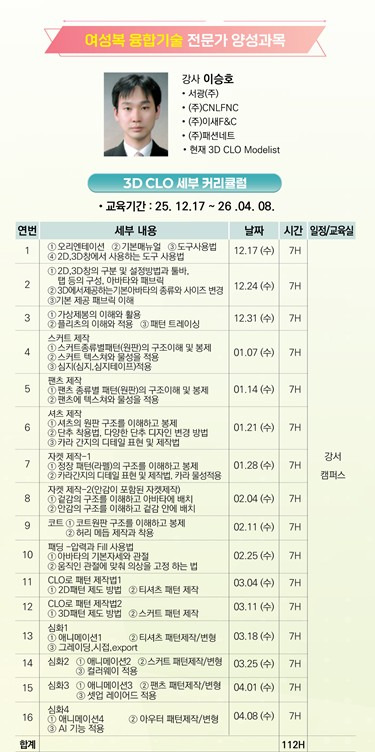 ◯3D CLO포함, 여성복 융합기술 분야 세부 커리큘럼