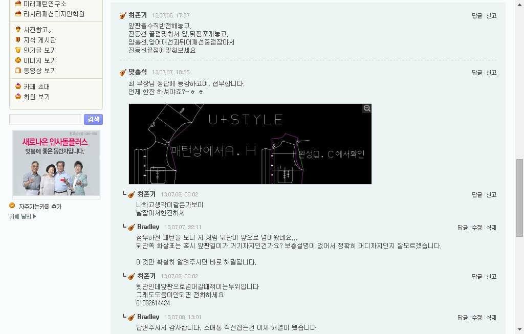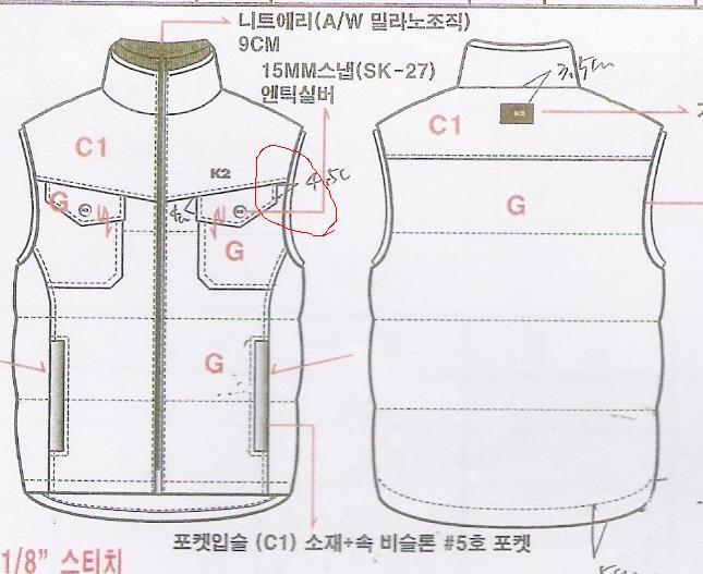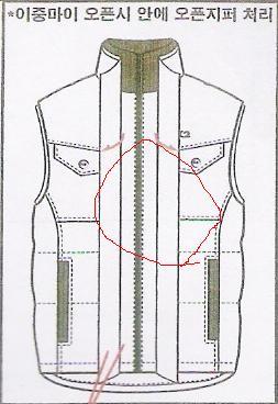 작성자(*^-^*) 작성시간 15.11.09 제가 보기에는..이중앞마이 작업시...저렇게 붙어있으려면 앞미까시쪽에서 합복이 되어야 될거 같습니다. 후라쉬 개념으로 접근하시면 될듯. 암홀 역시 암홀미까시에 니트합복이 되어야 할것으로 보임. 가슴후다 같은경우 앞요크 절개선에 끼워물리는 방식으로 요크까지 그려주시면 됩니다. 물론 아래 주머니는 반인치정도 떨어지겠죠? 봉제 생각하시면서 작업하시면 도식화 이해하기 좋습니다. 원하시는 답변인지 모르겠습니다^^