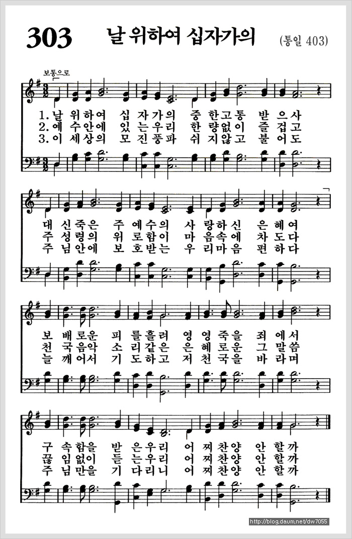 날 위하여 십자가의[찬양*악보*가사] - 새찬송가 303장, 통일찬송가 403장