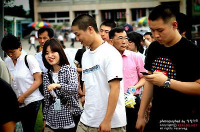 전경을 취재하고 있는데 기념촬영을 하고 있는 커플이 보였다.
