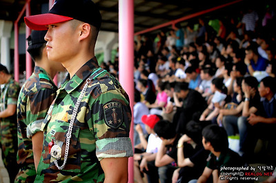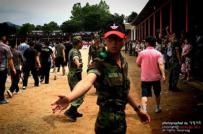행사장에서 통제하고 있는 조교들의 늠름한 모습,
