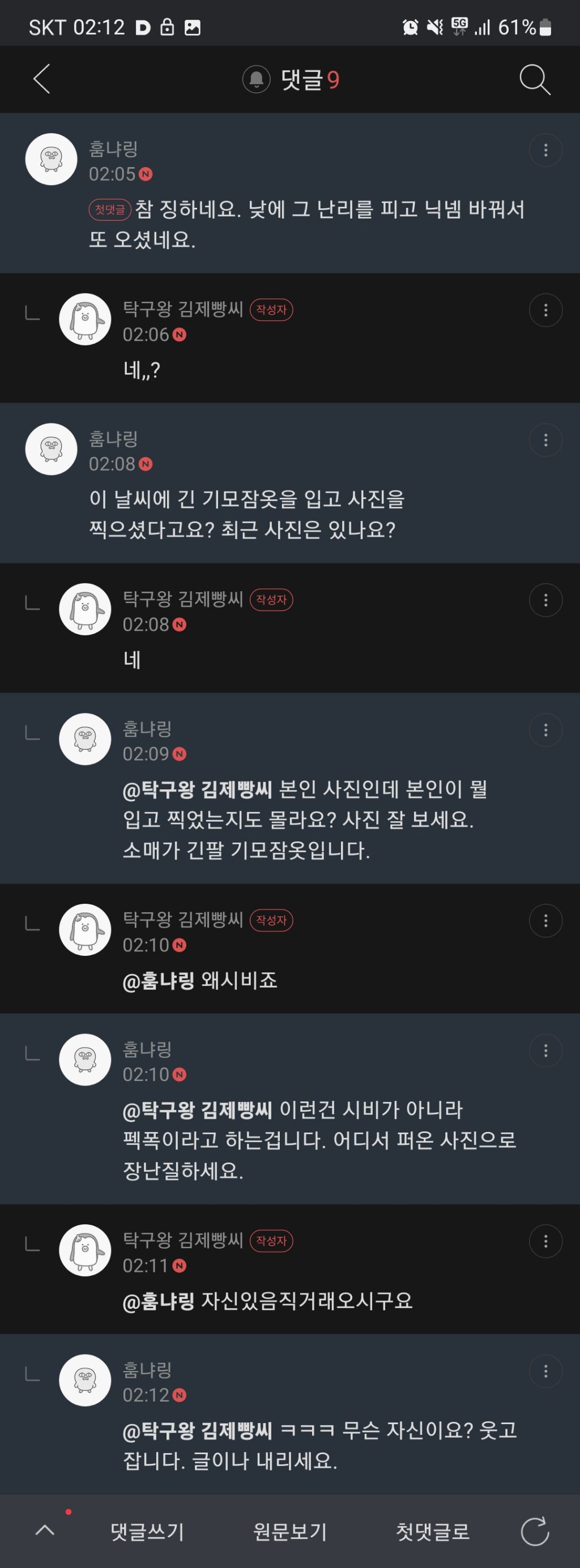 새벽에 탁구왕 김제빵씨가 다녀갔습니다. 닉네임 끝에 씨만 붙였더군요. 게시했던 글과 댓글 남기니 참고하세요. 사기행위가 근절되기를 간절히 바랍니다.