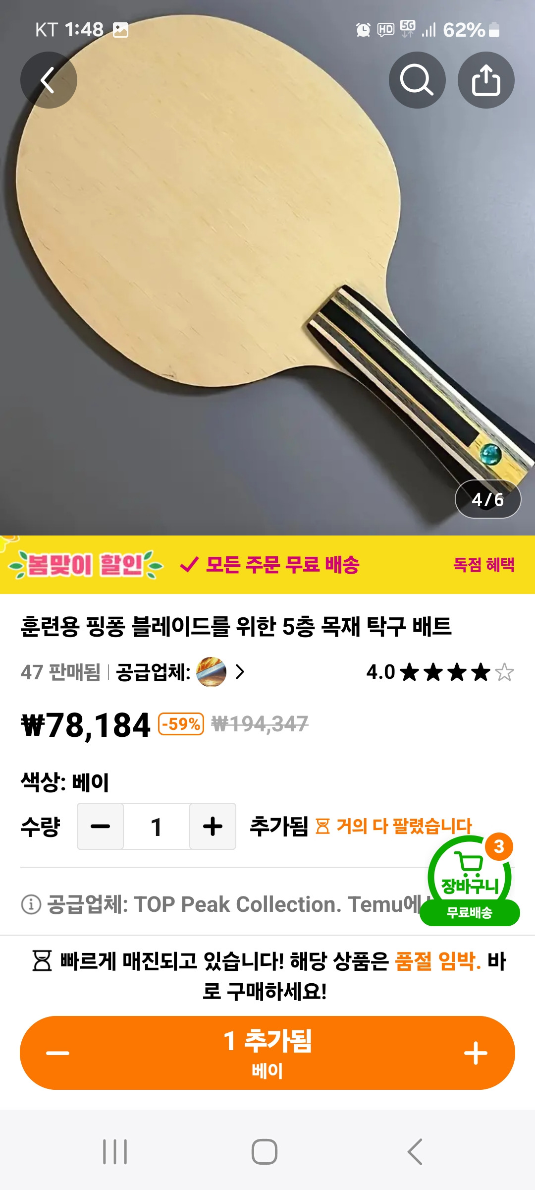 새 제품이나 제품 홍보, 탁구용품과 관련이 없는 제품, 다량횟수로 게시판을 도배하는 글들은 무통보 삭제 조치 될 수 있습니다.