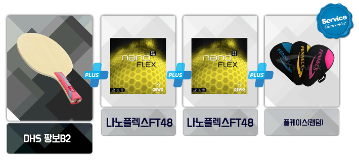 ※ 세트주문시, 부착을 원하시면 ※ 러버와 라켓 부착해달라고 적어주셔야 부착되어 발송되며, 미기재시 미부착되어 나갈 수 있습니다. 팡보 FL(100,000원) + 나노플렉스FT48 양면 ( 68,000*2 )