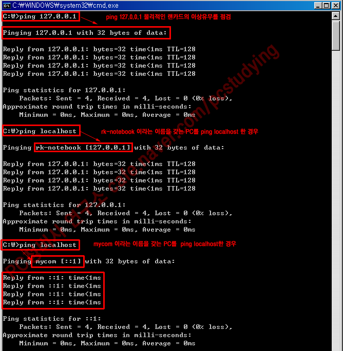 우리들의 컴퓨터에서 어디에서나 ping 127.0.0.1을 하면 어느 컴퓨터나 동일한 화면이 나오지만,