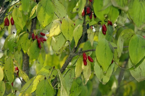 봄에 노란 산수유 꽃이 가을에 빨간 열매가 달렸습니다