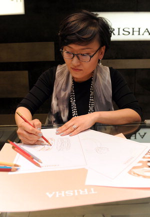 | 주얼리샵 트리샤의 디자인연구소 김경영 소장이 커플링 산토리니의 스케치를 손질하고 있다. |