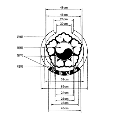 정부에서 1970. 7. 3 대통령령 제5151호로 공포한 나라문장 표준 규격은 아래와 같다.