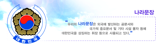 우리나라 국장은 우리나라를 나타내는 상표와 같은 것이다.