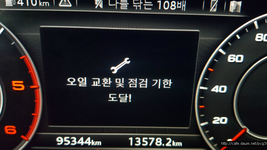 *95,300km 16년식 계기판에 "오일 교환 및 점검기한 도달" 맨트로 입고되어 점검후 엔진오일 교환.