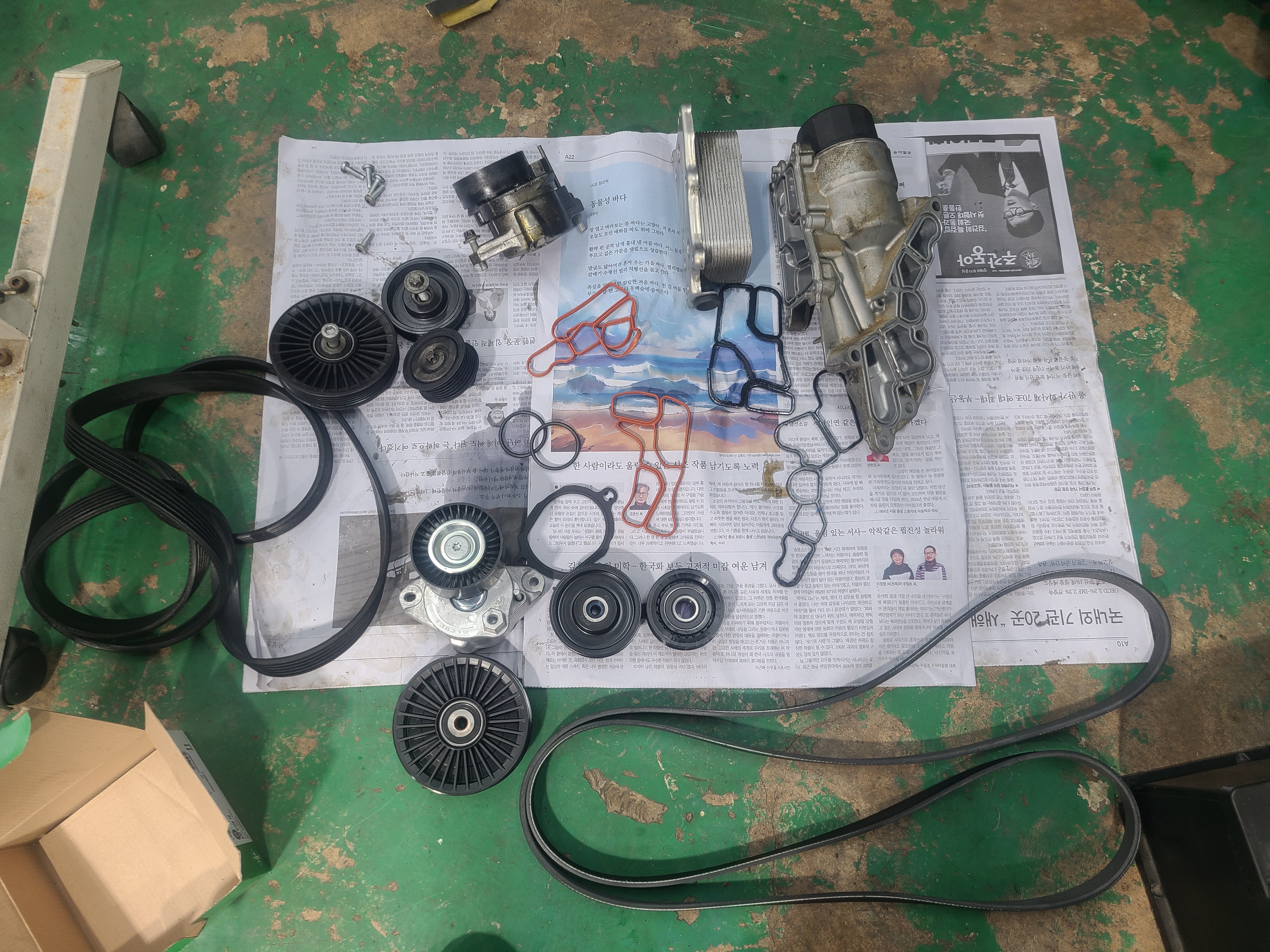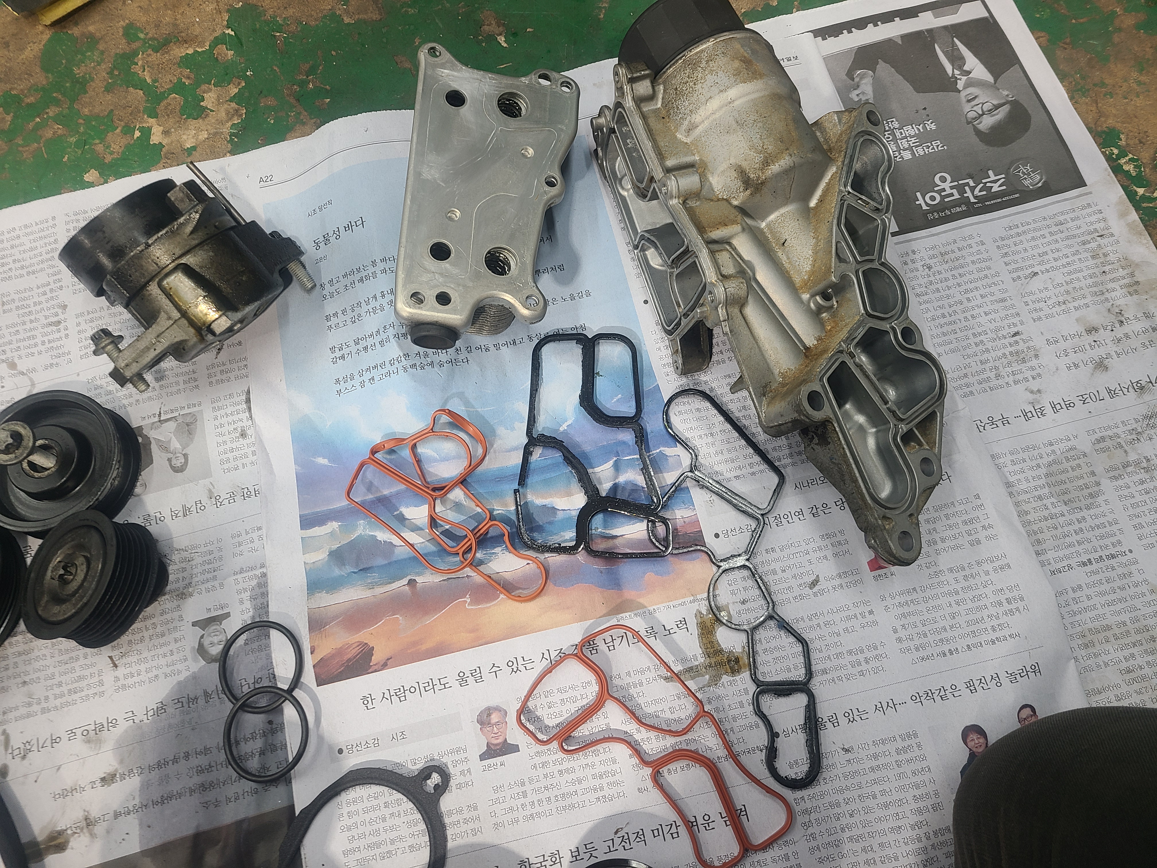 [종로구수입차정비부품/손세차/실내크리닝] 벤츠S500 W221 11년식 엔진오일누유/오일휠타하우징가스켓오링/쿨러가스켓/겉밸트셋트/텐션