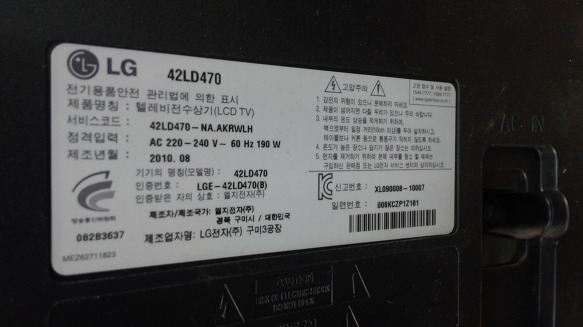 42d470 lg lcd tv 전원이 켜지지 않아 입고 되었습니다.