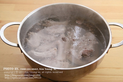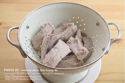 끓는 물에 한번 우루루 끓여 물은 버리고,