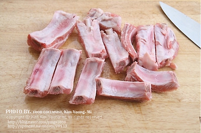 등갈비는 깨끗이 씻어 한쪽씩 잘라 놓고,