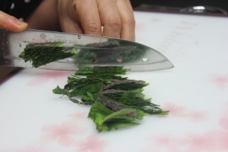깻잎은 고명으로 올릴거라서 채썰어주세요.콩나물도 깨끗하게 준비해주세요.