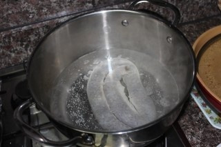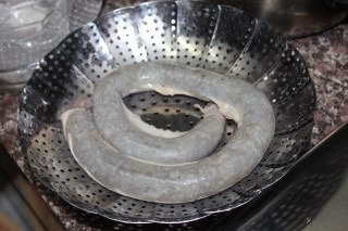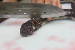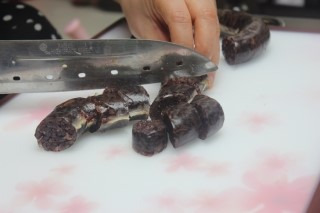 껍질을 벗겨서 30분 정도 담가주세요.그 후 순대를 먹기좋게