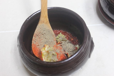 * 간장 1큰술, 고춧가루 1큰술, 다진마늘 1큰술, 새우젓 1큰술,