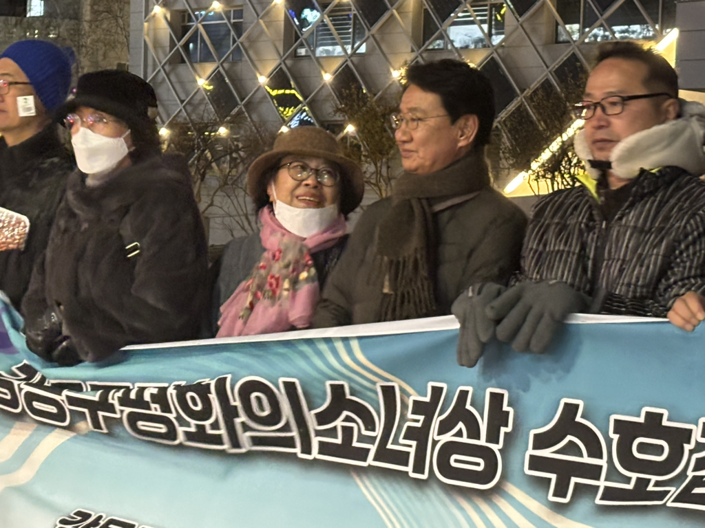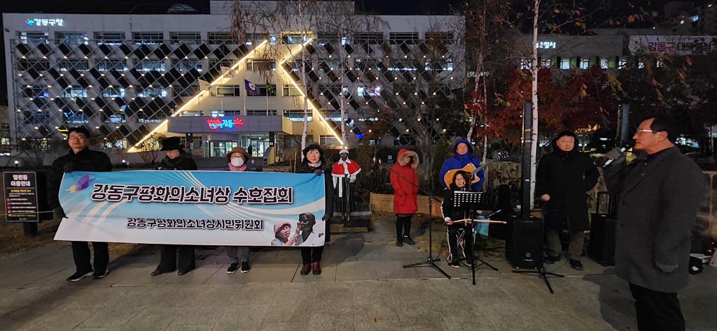 12.3 내란 1년이 되는 밤, 몹시도 추웠고 많은 분들이 여의도집회에 갔지만 우리는 지역에 남아 매달 첫째주 수요일 여느때처럼 #강동구평화의소녀상을 지키며 #민주주의와_평화_인권을 노래하고 이야기했습니다. 해금연주와 시낭송 그리고 민중가요가 함께 한 뭉클하고 감동적인 수호집회였습니디. #전쟁범죄사과 #민주주의 #내란청산 #강동구평화의소녀상시민위원회