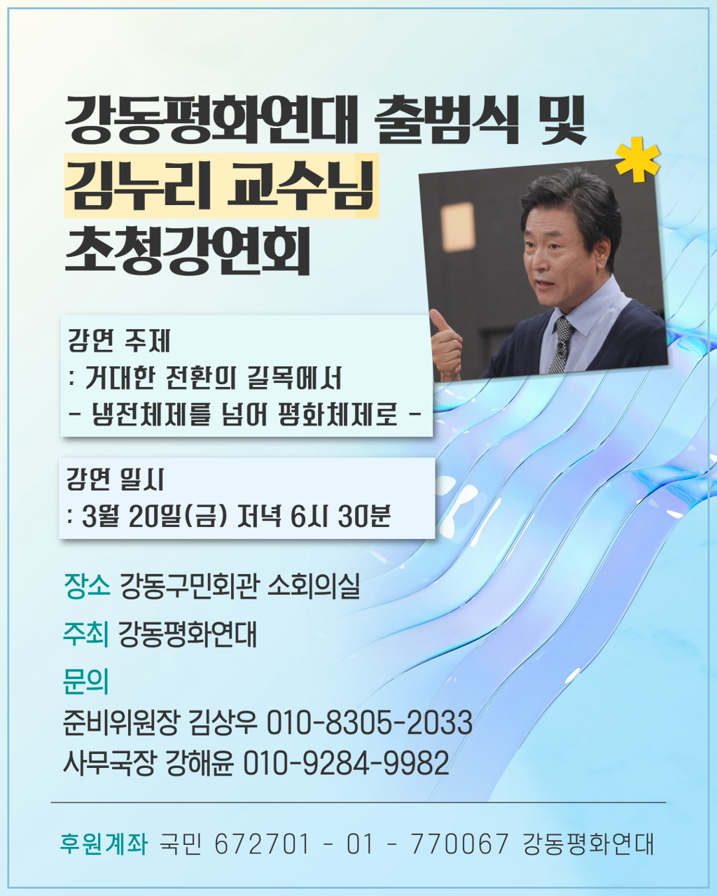 3월 20일(금) 강동평화연대 츨범식 작성자최형숙 로자|작성시간26.01.30|조회수14 목록 댓글 0 글자크기 작게가 글자크기 크게가 다음검색 현재 게시글 추가 기능 열기 북마크 공유하기 신고 센터로 신고 댓글 댓글 0 댓글쓰기 답글쓰기 댓글 리스트