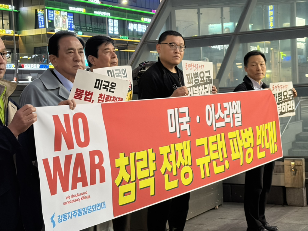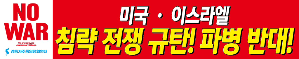 3.26(목) 전쟁반대! 파병반대! 강동평화연대 긴급행동 작성자최형숙 로자|작성시간26.03.26|조회수55 목록 댓글 0 글자크기 작게가 글자크기 크게가 다음검색 현재 게시글 추가 기능 열기 북마크 공유하기 신고 센터로 신고 댓글 댓글 0 댓글쓰기 답글쓰기 댓글 리스트