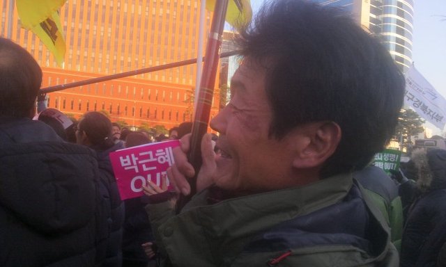 '비상시국대회는 어느 때보다 좋았다. 집회 발언은 대표자들이 아니라 단체들의 일반 회원들이 맡았다. 지루하게 비슷한 말을 인내하면서 들어야 하는 집회가 아니라 짧게 할 말 하고 정리하는 집회. 그리고 행진 때부터 청와대로 가자고 한 것, 을지로에 막힌 뒤에 종로로 진출하여 기세를 올린 것, 그래서 어쩔 수 없이 경찰이 물대포를 쏘았지만 거기에 맞서서 흩어지지 않고 버틴 것...이제 민중들이, 시민들이 거리에 나서기 시작했다. 뭔가 역동적인 움직임이 시작되지 않을까. 광장에 가두어두는 집회를넘어서 함께 행동하는 역동적인 판을 만들어 보면 상당히 달라질 수 있을 것 같다.