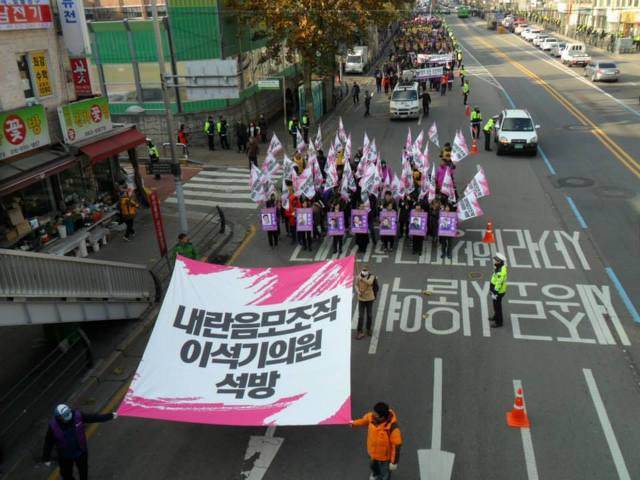 '박근혜 정부의 민주주의 파괴와 공안탄압이 갈수록 거세지자 시민들이 거리로 나서기 시작했다. 7일 통합진보당 당원들은 1만여 명이 운집해 정부의 노골적인 탄압을 규탄했고, 2만여 명의 시민들도 '비상시국대회'를 열고 '박근혜 정부 심판'에 뜻을 모았다. 시민들은 집회 이후 청와대로 행진을 시도했고, 경찰은 물대포까지 동원하며 강제해산에 나섰다. 서울광장에서는 국정원의 선거개입을 규탄하는 촛불집회가 계속 이어졌다.' [..] 이날 비상시국대회에는 송전탑건설 반대투쟁을 하고 있는 밀양 주민과 제주 강정마을 주민, 용산참사 유가족들도 무대에 올라 국민과의 소통을 거부하는 박근혜 정부와 맞서 싸우겠다고 밝혔다.[..]종교계 등에서 박 대통령의 하야를 요구하는 목소리가 높아지는 가운데 열린 이날 촛불집회에서는 국정원의 선거개입에 대한 규탄 뿐만 아니라 '박근혜 대통령 퇴진'을 요구하는 목소리가 어느 때보다 커졌다. 촛불집회를 주관하고 있는 '국가정보원 정치공작 대선개입 시민사회 시국회의'는 대선 1주년이 되는 오는 19일, 오후 7시 서울광장에서 다시 촛불대회를 개최할 예정이다. (민중의 소리, 12월 7일)